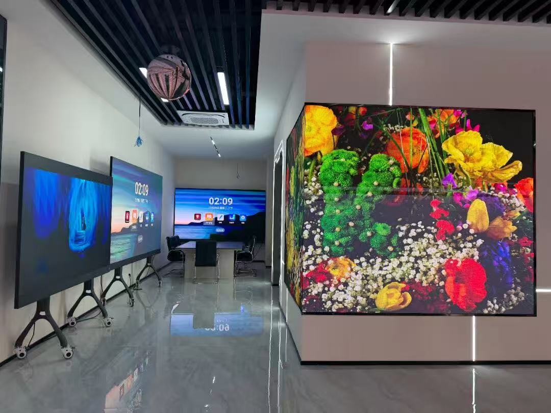 在章總的引導(dǎo)下,洪秘書長與張強顧問一行參觀了亮彩電子智能化展廳。展廳內(nèi)集中展示了柔性屏、貼膜屏、全息屏、變色龍、LED一體機等前沿技術(shù)產(chǎn)品,以及智慧會議、智慧教育、無紙化辦公等場景化解決方案。